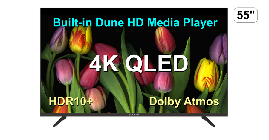 The unique functionality of Dune HD media players, built on over 15 years of experience in media player development, is now integrated directly into the TV — no need to buy a separate device. Support for the most advanced video formats up to disc ISO with full disc menus and decoding of all audio tracks, direct NAS access via SMB/NFS, a movie catalog, and extended media capabilities.